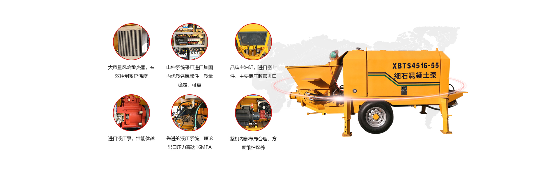 The fine aggregate concrete pump with advanced domestic configuration and high outlet pressure has been successfully developed